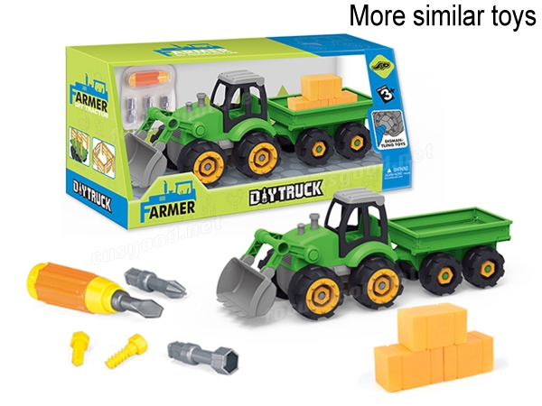 This product can be used to disassemble the assembled truck with a screwdriver tool. The toy is equipped with 2 cows and can be placed on the trailer.